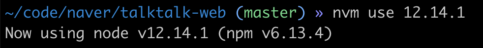 $ nvm use 12.14.1 # 선택한 노드버전을 실행합니다.